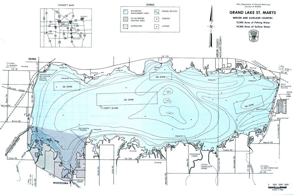 Grand Lake St. Marys, OH Fishing Map - Southwest Ohio